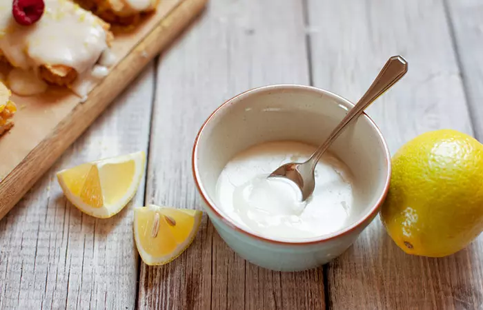 दही में कुछ बूंदें नींबू की मिलाकर स्कैल्प पर लगाएँ।